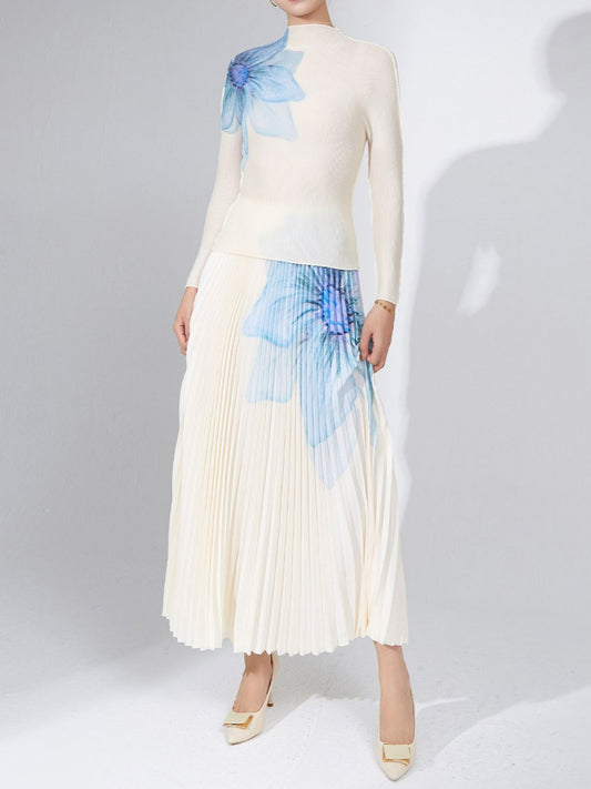 Deep V Neck Ruffled Knit 2-Piece Skirt Set
