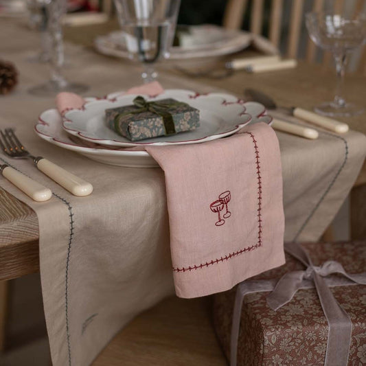 Embroidered Linen Napkins - Plaster Pink (set of 4)