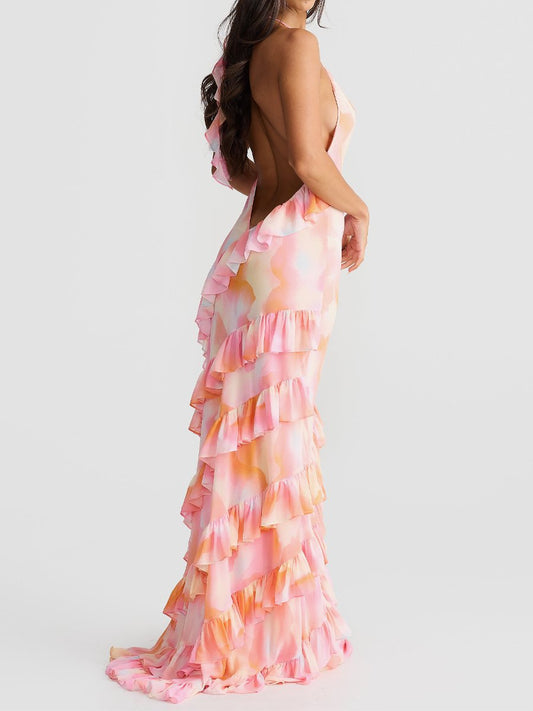 Sleeveless Pleated Backless Irregular Sexy Dress