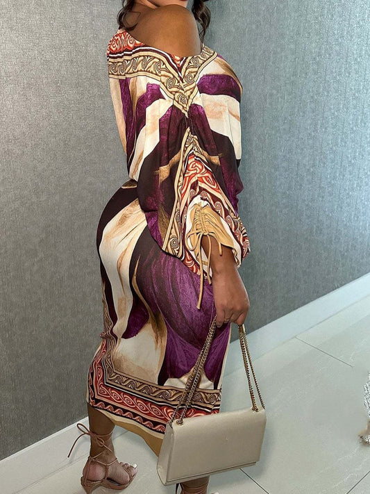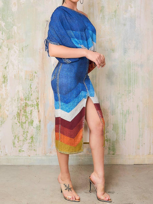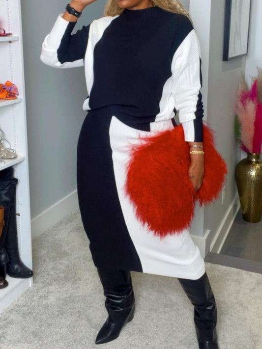 Knitted Irregular Loose Casual Color Block Maxi Sweater Dress