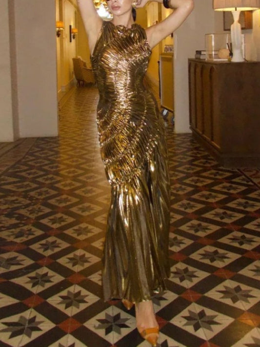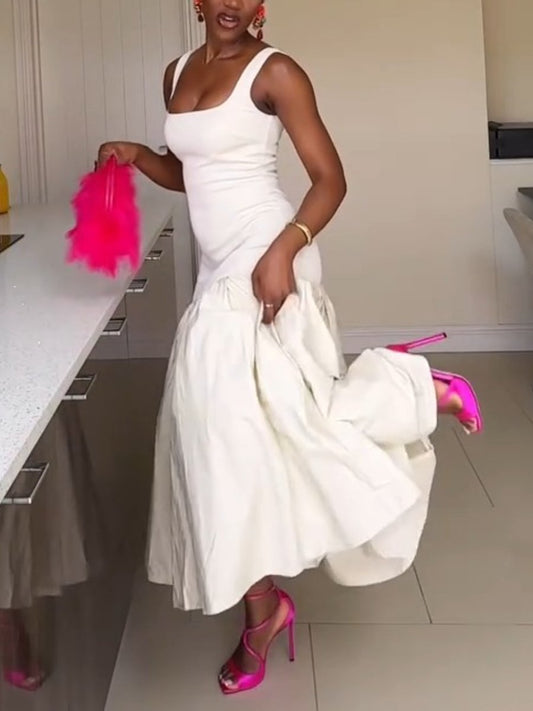 Elegant Sleeveless Slim-Fit Ruffle Irregular Party Dress