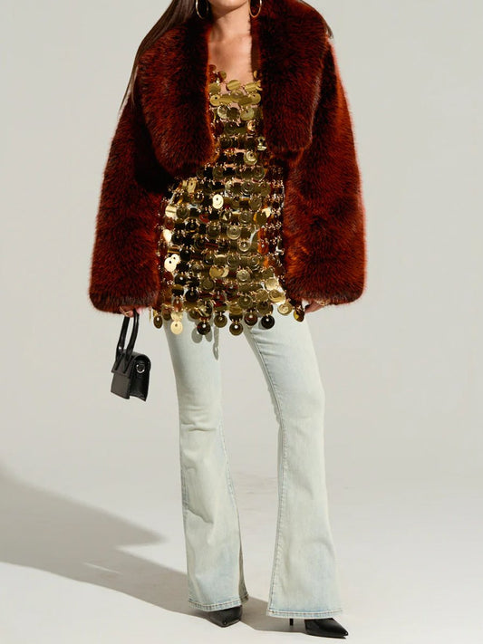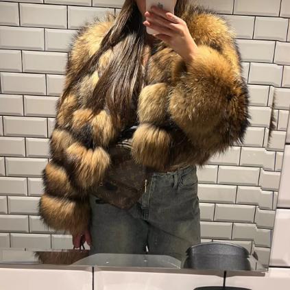 Faux Fox Fur Shawl Three-Section Horizontal Stripe Cape