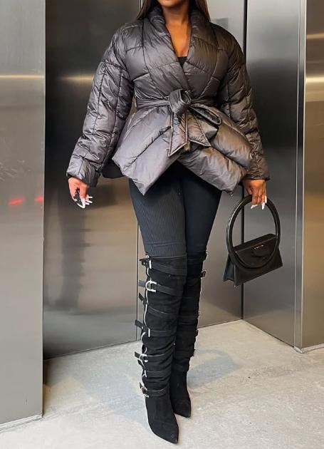 Hourglass Silhouette Lapelless Cinched Waistline Blazer