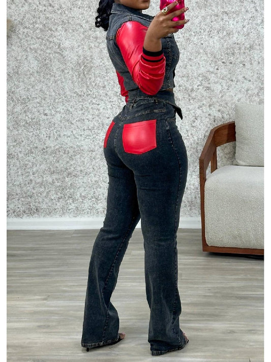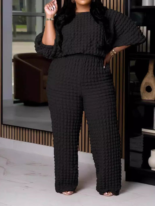 Retro Sexy V-Neck Beads Long Sleeves & Splits All-Match Straight Pants Set
