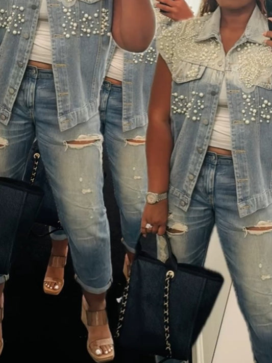 Retro Sexy V-Neck Beads Long Sleeves & Splits All-Match Straight Pants Set
