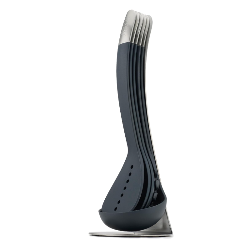 - Set includes: Slotted Turner, Spaghetti Server, Slotted Spoon, Solid Spoon, and Ladle
