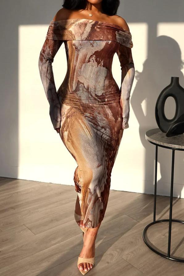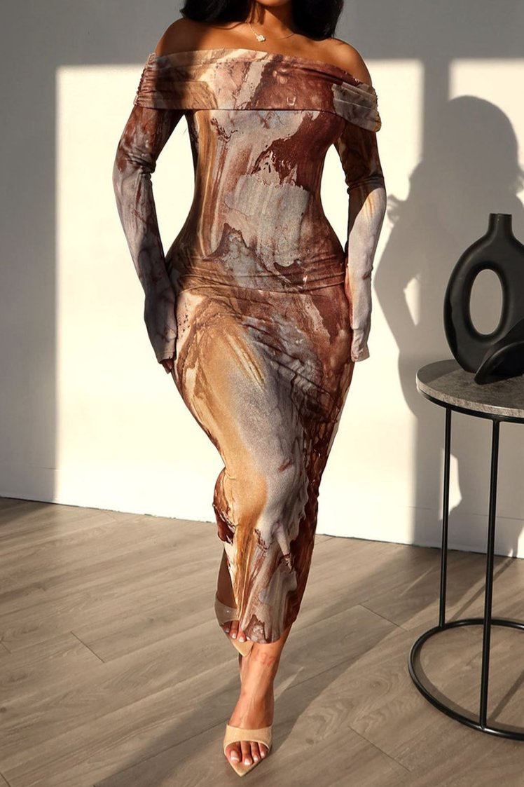 Marble Print Off Shoulder Dress