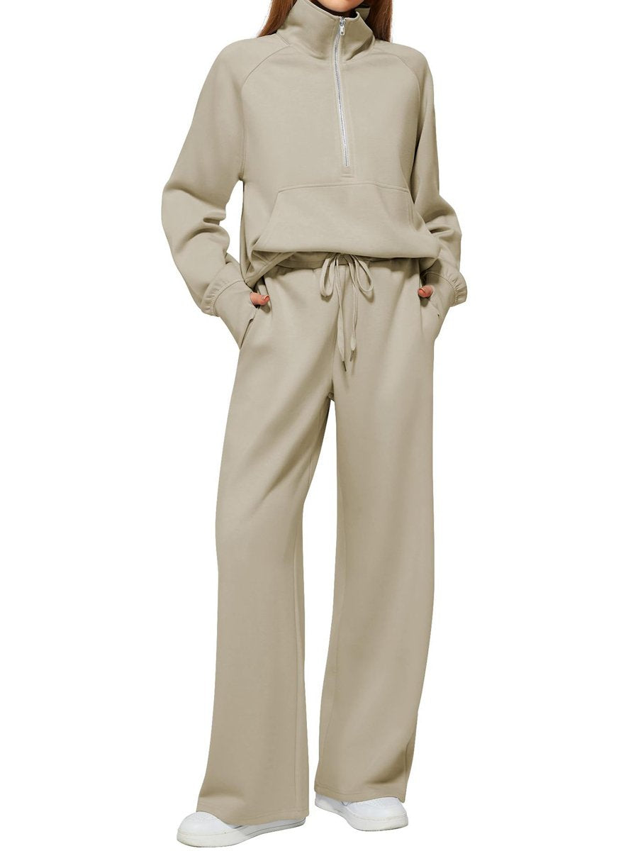 Casual Zip Up Sweatshirt & Wide Leg Sweatpants