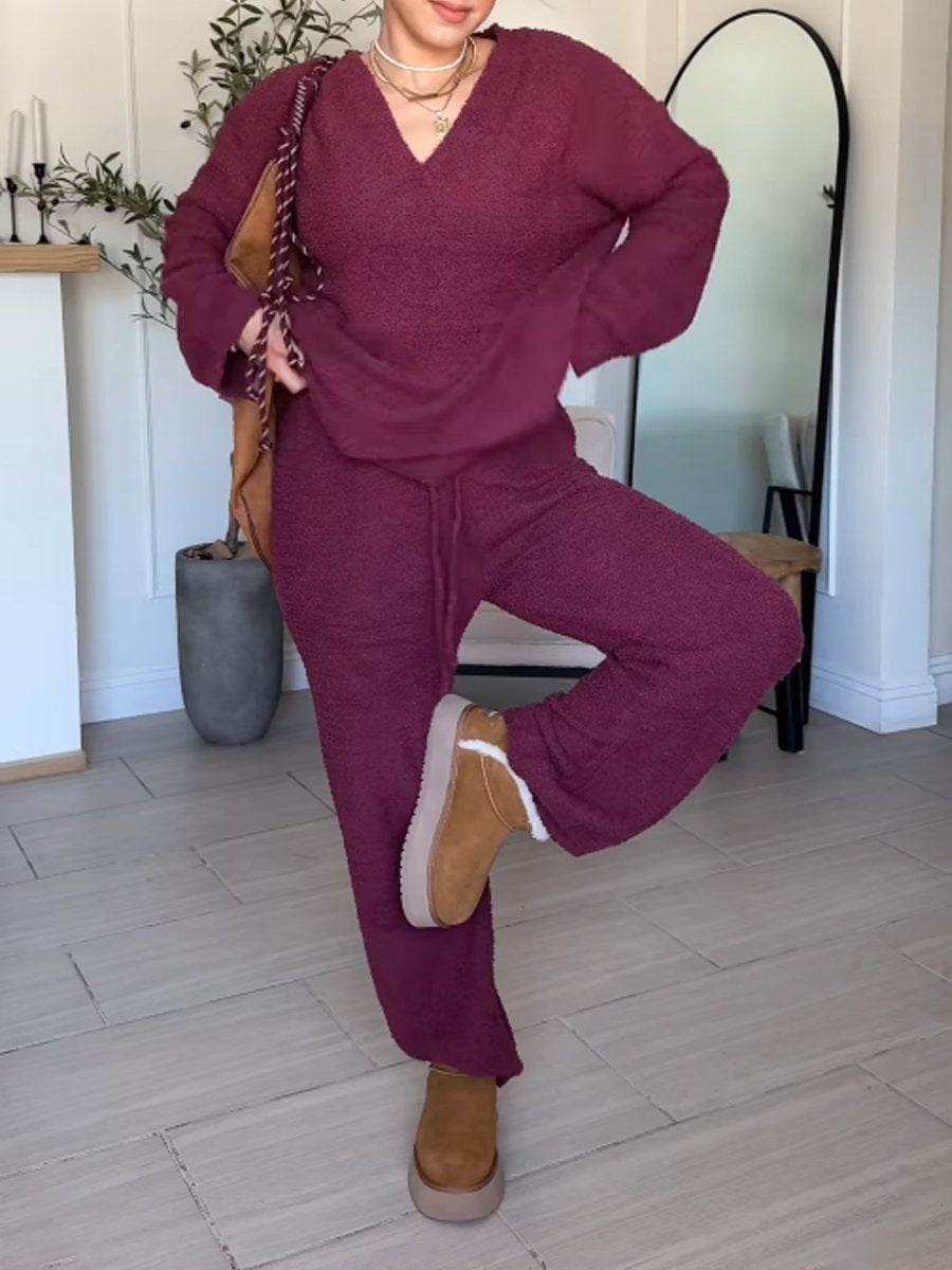 Comfortable Solid V-neck Casual Warm Two-piece Set