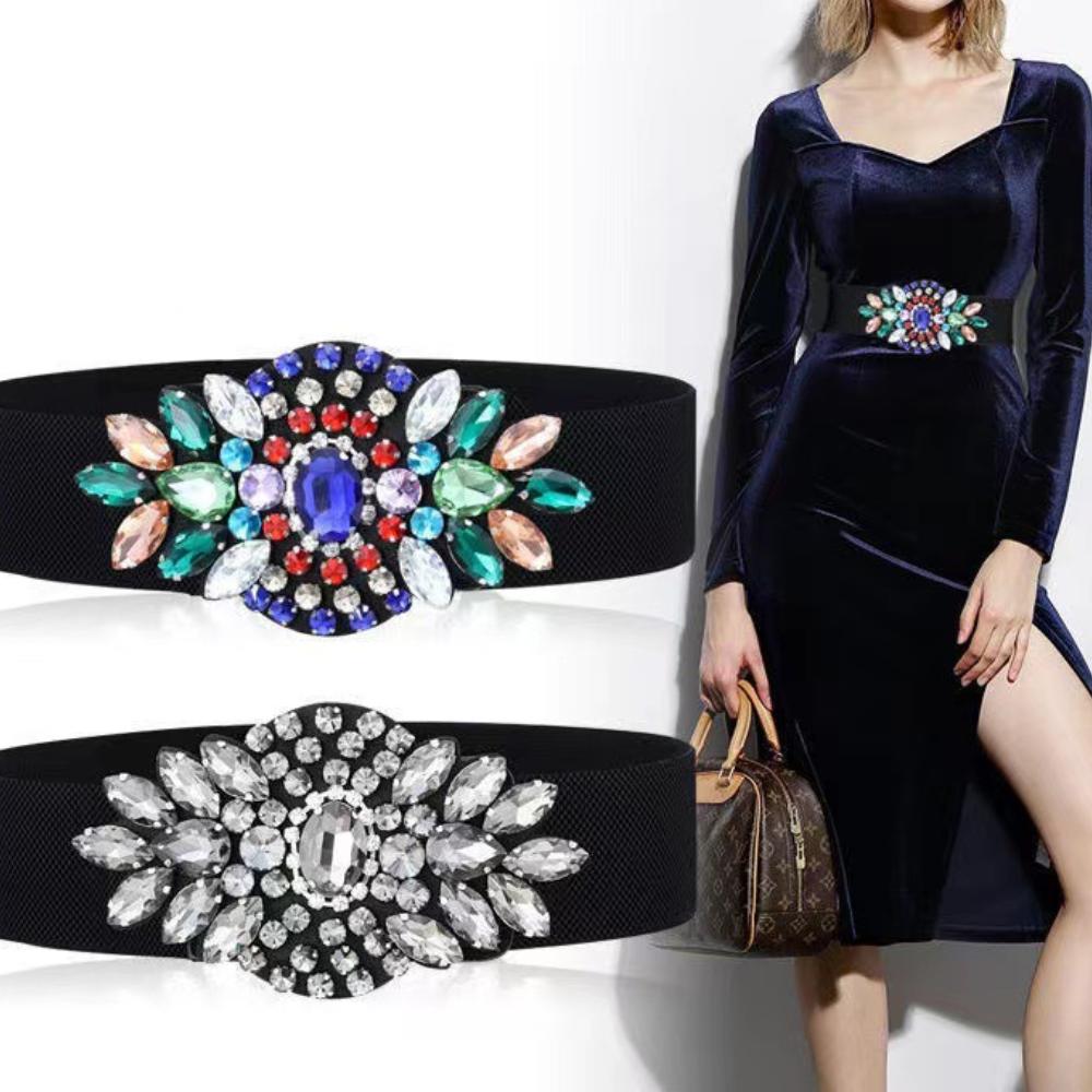 Stylish Floral Rhinestone-encrusted Wide Girdle